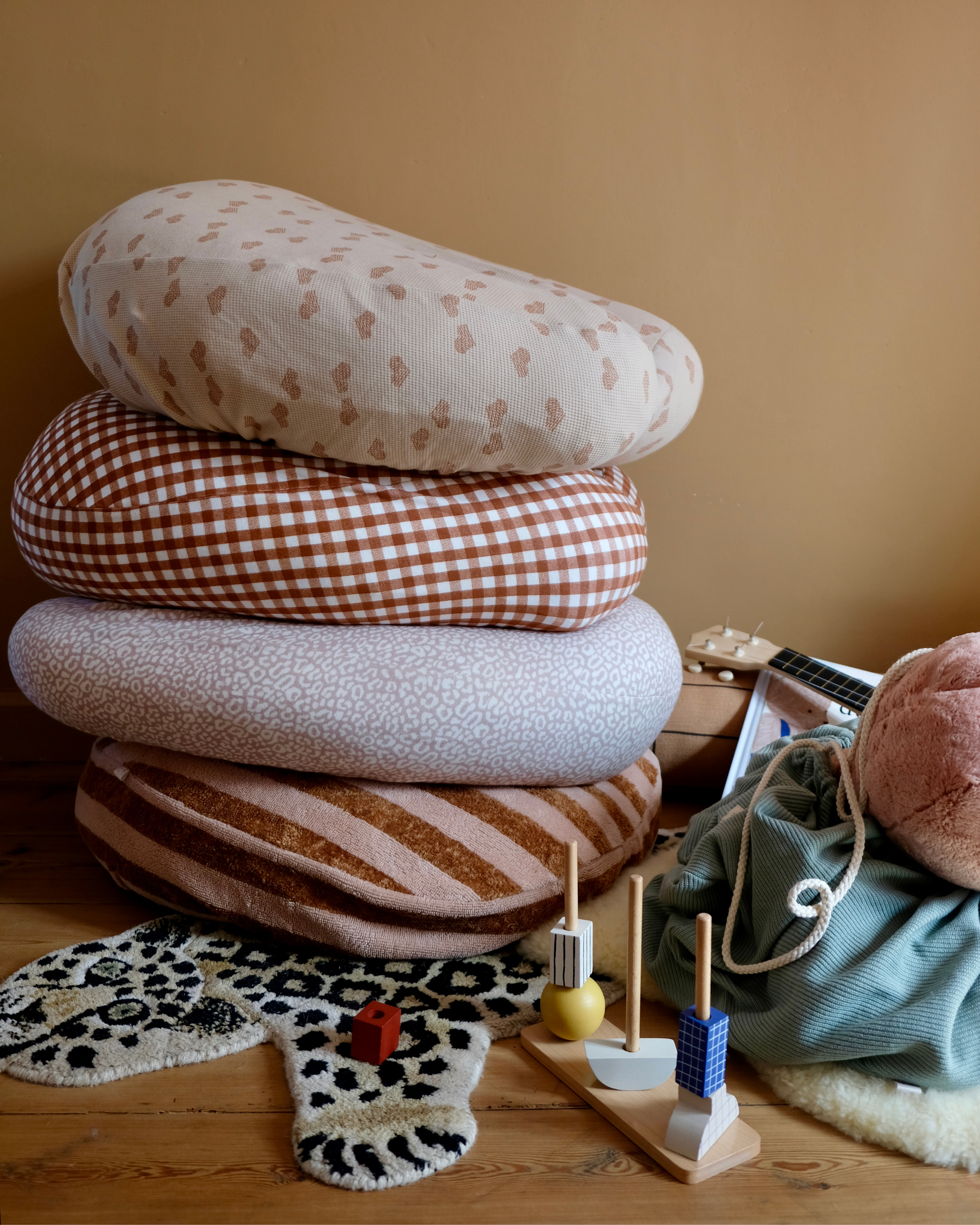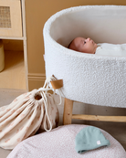 Grâce à sa corde, la housse s'adapte à tous les coussins (d'allaitement) et le transforme en nid douillet pour que votre bébé s'y love (et ne glisse pas entre les 2 boudins du coussin). Quand vous ne voulez plus l'utiliser en pouf, vous pouvez l'utiliser également en sac ou pochon de rangement dans la chambre, ou à emporter n'importe où !