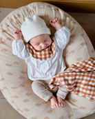 Dans l'optique de donner une seconde vie au coussin d'allaitement, cette housse a été conçue pour que vous puissiez poser votre bébé sans qu'il ne glisse entre les deux boudins.